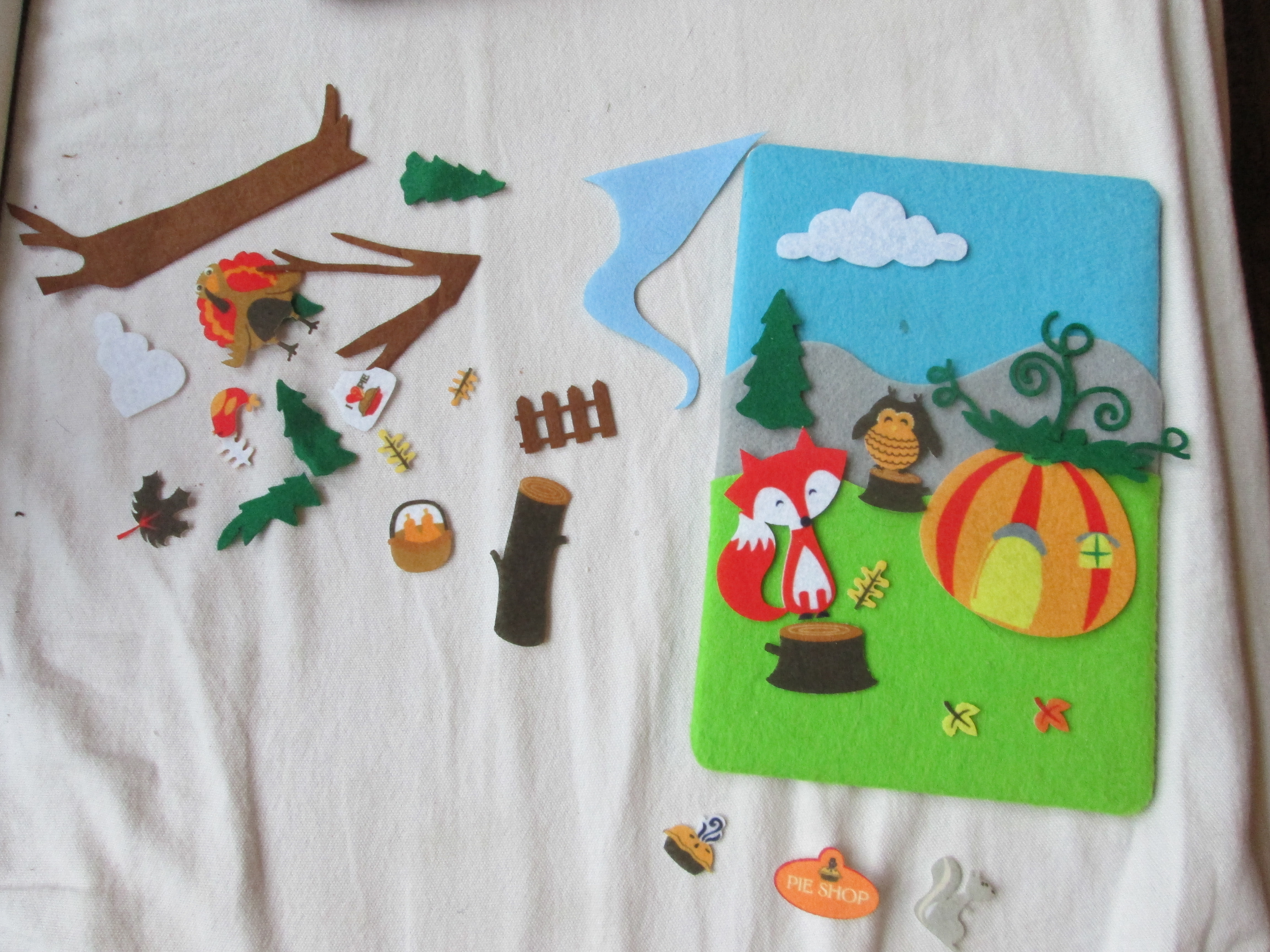 This year when we opened up the tubs of fall decorations (yes, that is tubs, plural), I was so happy to find my little fall felt board! Oh yes, let the fun begin.