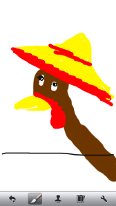 Then one day a new kind of bird came flying into the corn. Scarecrow saw him coming, of course, and straightened up. His ferocious face put on its most terrifying scowl. He rocked forward causing the post to creak loudly. This caught the new bird’s attention, but instead of flying away in alarm, the bird turned toward the scarecrow and flew straight in his direction. Scarecrow could now see the bird more clearly, and what an ugly bird he was. His feathers were black but he was much too big to be a crow. His neck was long and bent in a strange way. His head was red and knobbly. In some ways he was as scary looking as the scarecrow. Seeing that the crooked old bird was not scared off by creaking and flapping, Scarecrow leaned forward as far as he could. The wind caught him and spun him in circles, his outstretched arms swinging crazily. The ugly bird never even hesitated. He flew straight up to Scarecrow and landed at his feet, looking up patiently. As soon as Scarecrow stopped spinning, the bird flew up and perched on Scarecrow’s right arm.